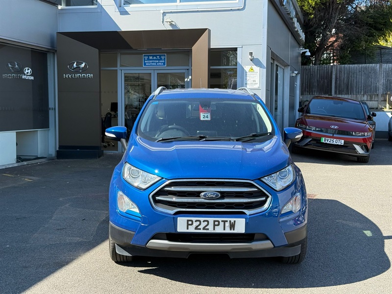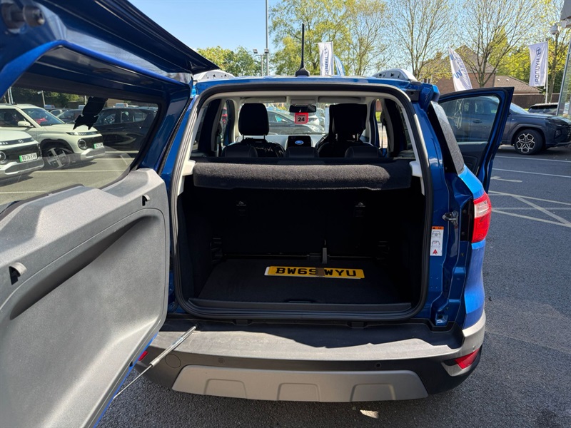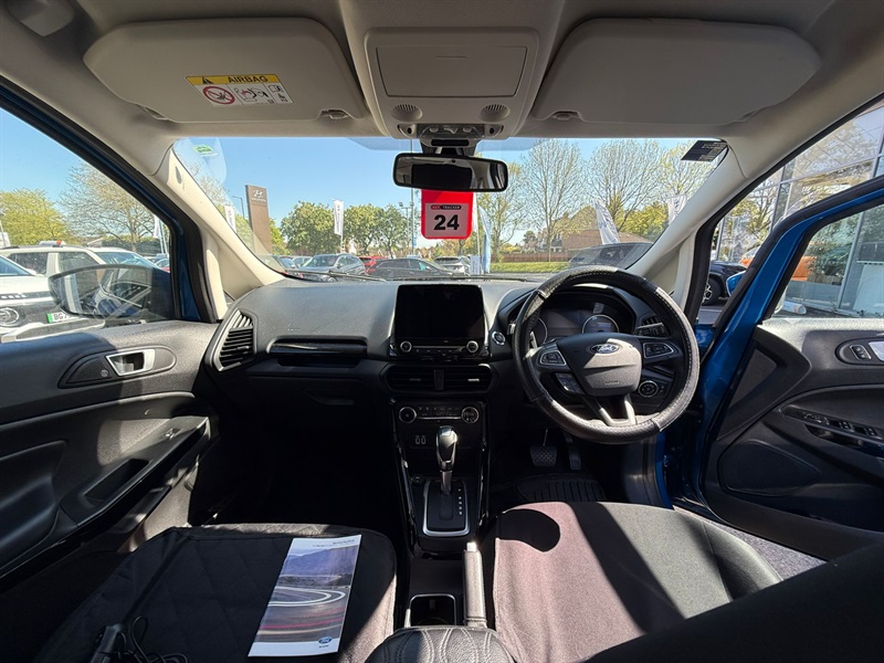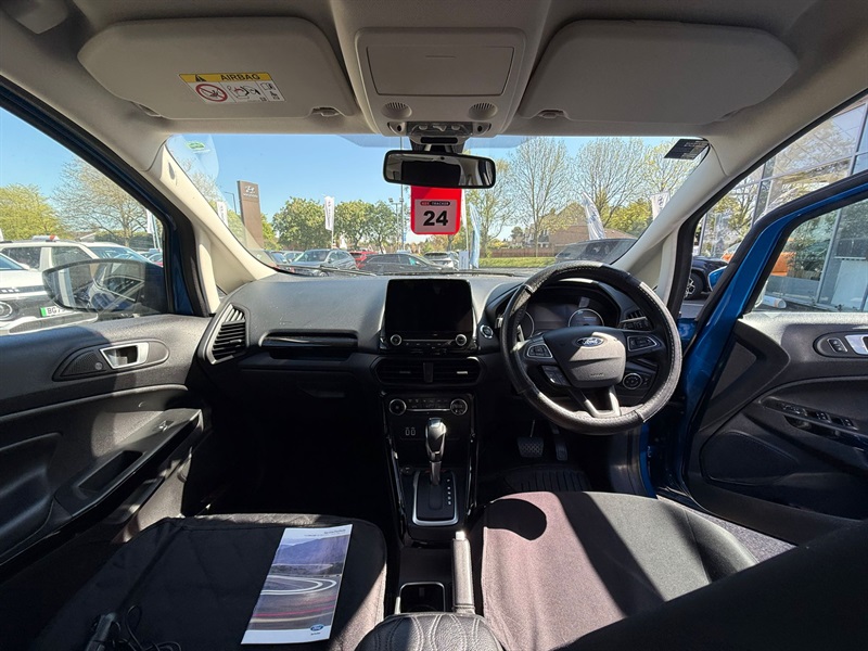 The 2019 Ford EcoSport Automatic is a compact SUV that combines functionality with a touch of style, making it a popular choice for urban drivers in the UK. With its elevated seating position and spacious interior, the EcoSport ensures both driver comfort and excellent visibility. Under the bonnet, it features a peppy engine that offers a smooth and responsive drive, enhanced by the convenience of automatic transmission. The exterior design is sleek and modern, with distinctive headlights and a bold grille, giving it a confident presence on the road. Inside, passengers enjoy a range of tech features, including Ford's SYNC 3 infotainment system with touchscreen capability, seamless smartphone integration, and a premium sound system. Practicality is further enhanced with a versatile boot space, ideal for shopping trips or weekends away. Safety features such as electronic stability control and multiple airbags ensure peace of mind on every journey. Overall, the 2019 Ford EcoSport Automatic is a reliable and stylish option for those seeking a dynamic driving experience. Read less